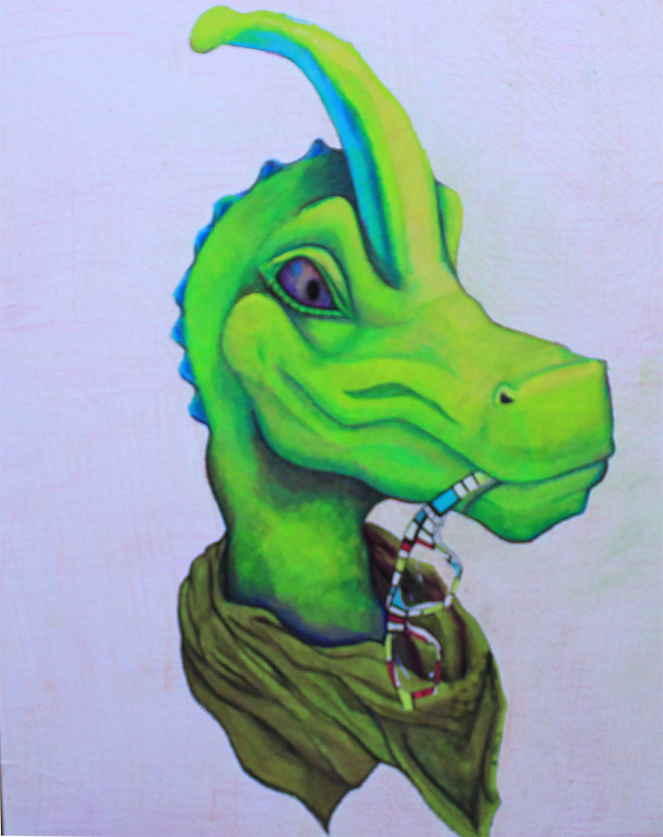 Fancy Dino II. Colored Pencil, Pen. 2016.