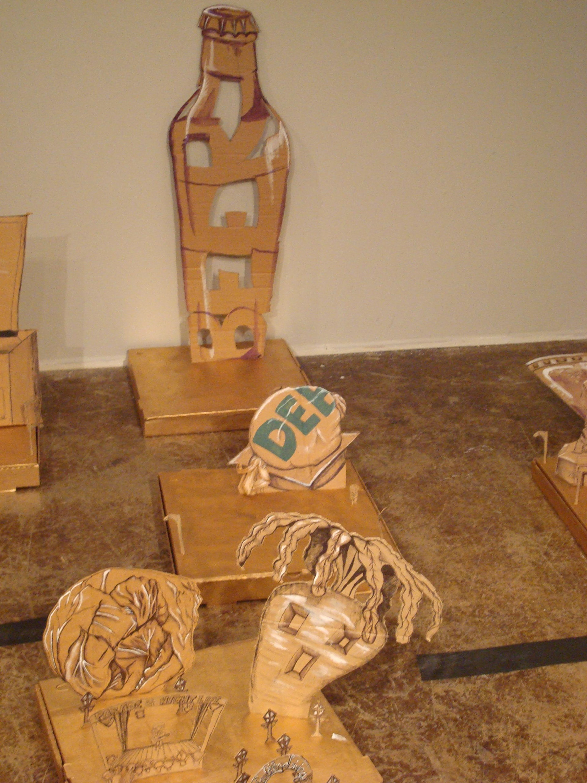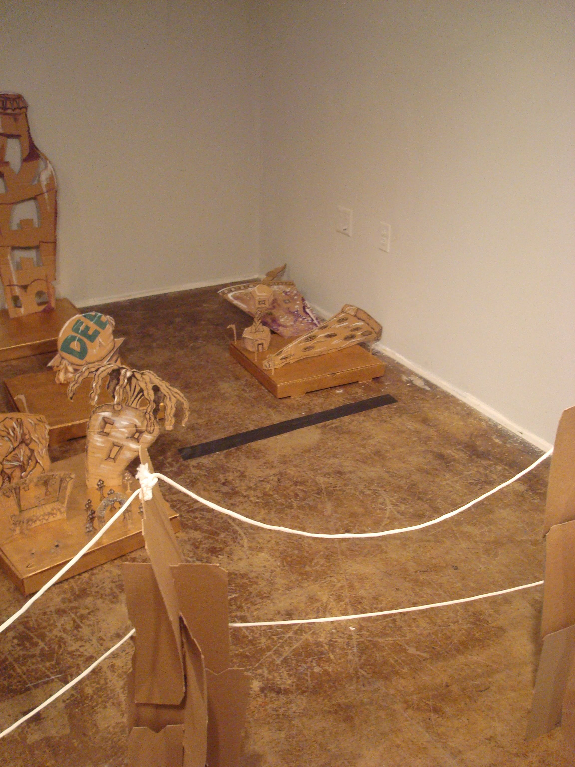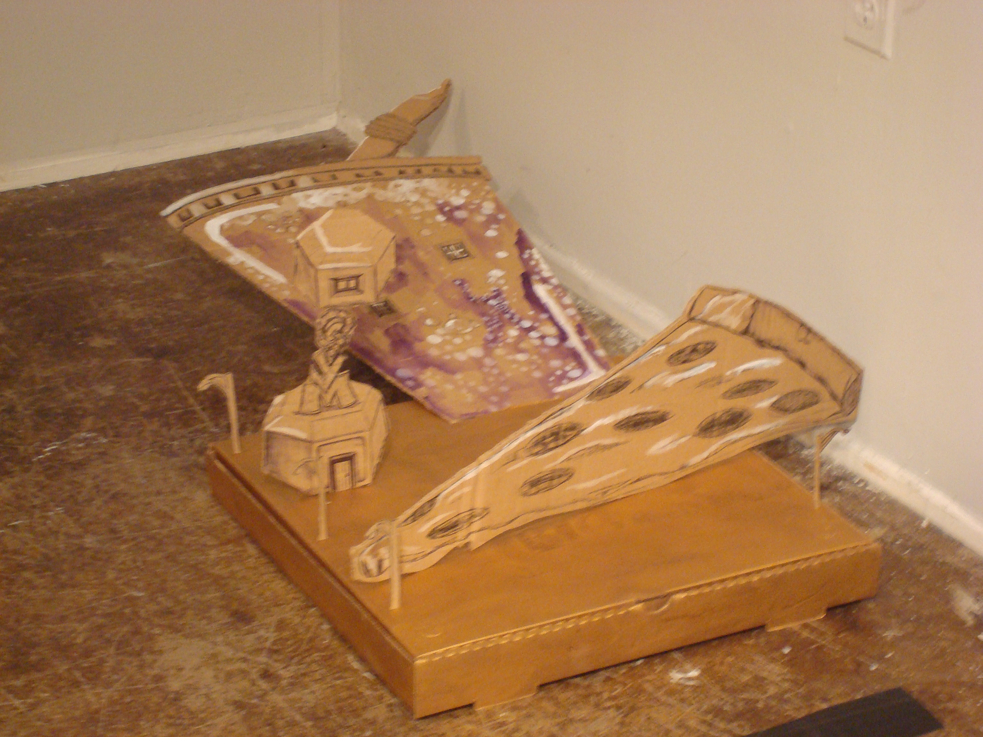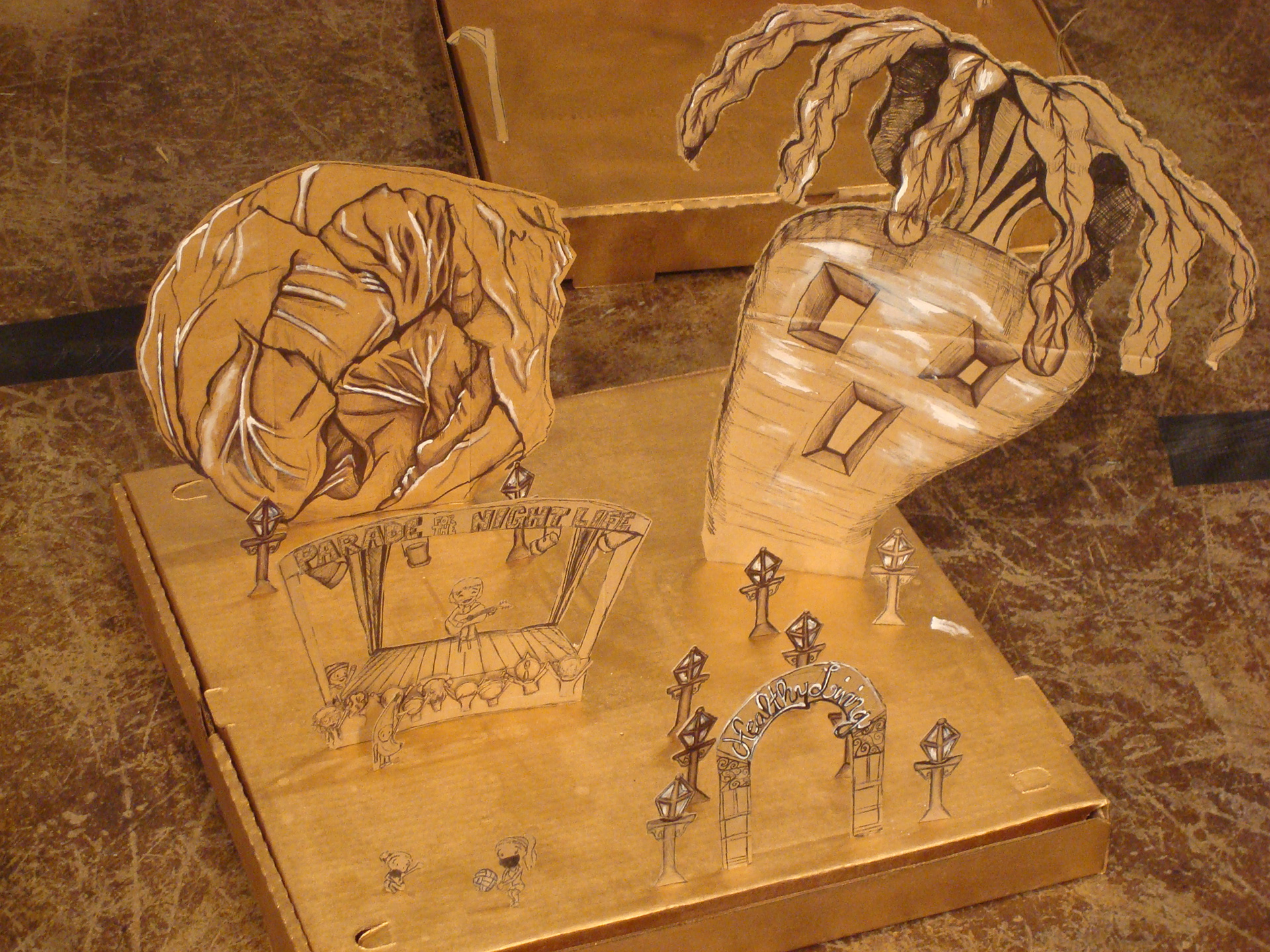 The "City of Great Expectations" represents a perspective look on the realities and expectations a young adult encounters when entering the working world. Students preach their idealistic view of the world as they work towards the completion of their secondary education. This idealism, represented by simple storybook illustrations and gold painted city blocks, show four different topics an individual encounters on their everyday trek: relationships, vices and lifestyle decisions, education as a whole, and other social concerns.