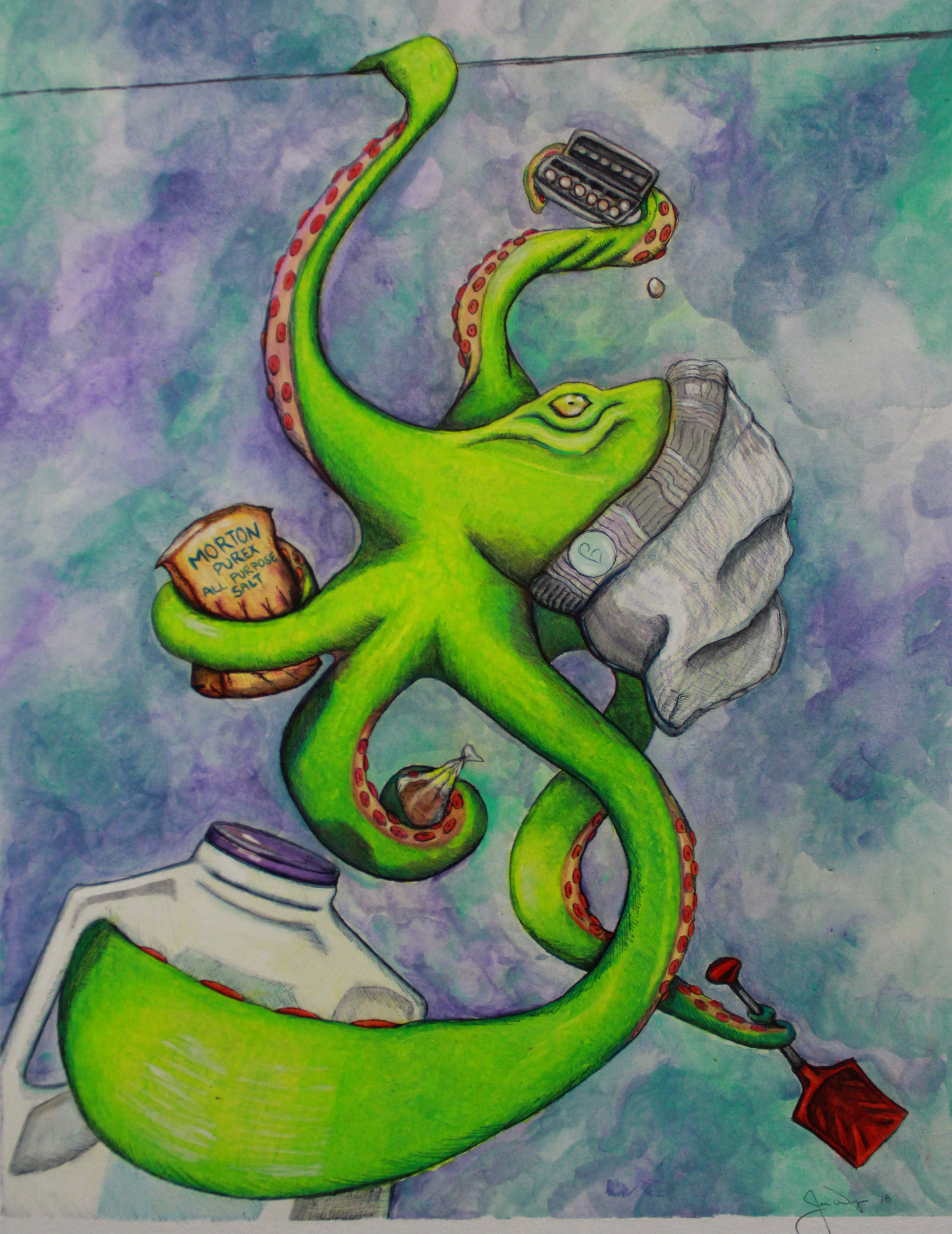The majority of these pieces are an older compilation of work completed in colored pencil, ink, and a touch of acrylic paint.